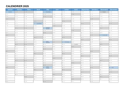 Les jours fériés sont intégrés avec une mise en forme discrète, pour que la lecture reste fluide et agréable.