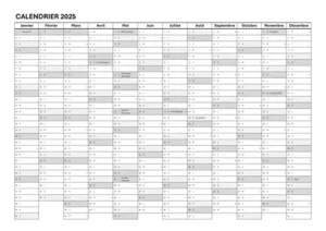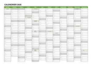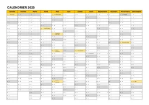 🗓️ Les plannings annuels 2025 – une année en un seul regard