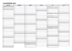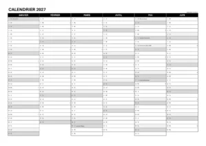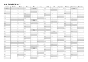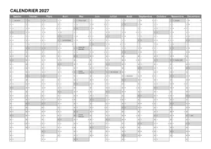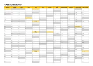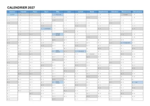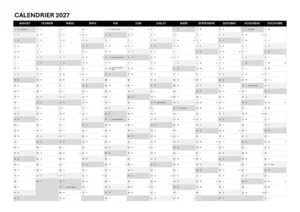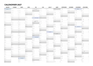 Plannings annuel et semestriels 2027 à télécharger et à imprimer gratuitement